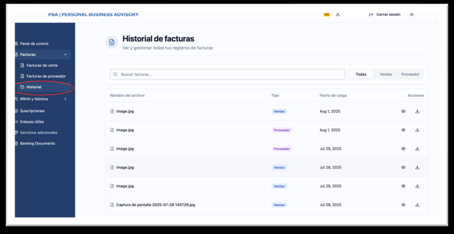 The dashboard on the website pba.top/panel is a modern digital platform designed to simplify the daily operations of an entrepreneur. Here you can upload invoices, manage employees, access additional services, and official resources — all in one place and available 24/7.